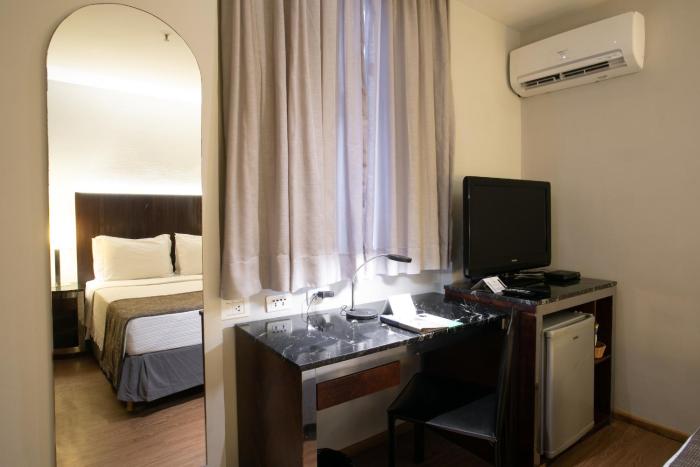The hotel is located nearby Praia de Copacabana, excellent view to the Ocean, good service , the breakfast is also good, rooftop terace with swimming pool and fitness. The rooms are quite small...