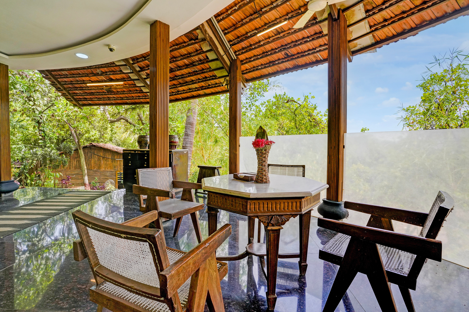 Located in a green area Food is good Spa is good But rest is not ok Furniture broken or needs to be rehauled/ changed Roof is broken in the bathroom Entry doors primitive Cannot be locked No...