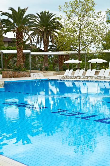 16 junior suites, 2 suites and 218 double rooms are available to guests in a 2-story main building and 8 auxiliary buildings. The reception desk in the lobby is staffed around the clock. Services such as a coat check, baggage storage service, safe and currency exchange service ensure a comfortable stay. Wireless internet access is provided in public areas. The hotel has wheelchair-accessible facilities and an elevator. There are a number of shops as well. The grounds of the hotel feature a playground and a lovely garden. Additional amenities include a newspaper stand and a TV room. Guests arriving by car can park their vehicles in the parking lot. Further services and facilities include a babysitting service, medical assistance, a transfer service, room service (for a fee), a laundry service, a hairdresser and a page service.
