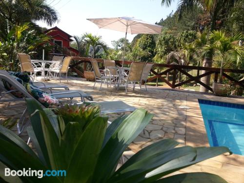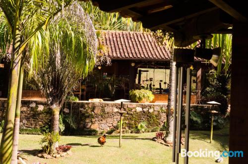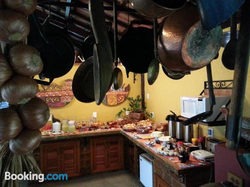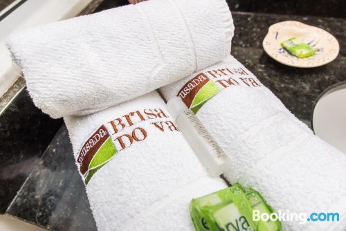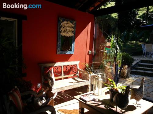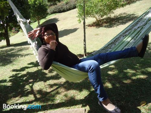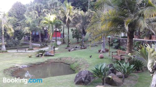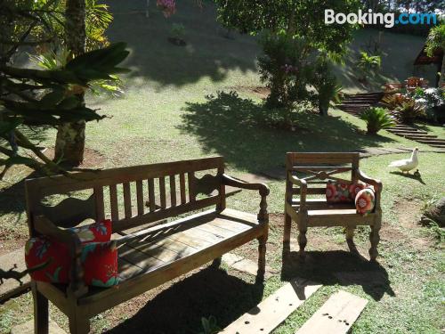 Fomos passar um final de semana para relaxar e encontramos o lugar ideal. Um café da manhã formidável com sucos, bolos fresquinhos, tudo de primeira. Quarto com roupas de cama e toalhas de banho...