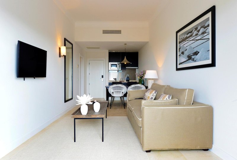 The rooms have a living room, a kitchen and a bathroom, as well as air conditioning and individually adjustable heating. Guests can enjoy the sea view from a balcony or terrace. The rooms have a king-size bed and a sofa bed. Guests can also reserve separate bedrooms. A safe and a minibar are also available. There is a fully-equipped kitchenette with a refrigerator, mini fridge, microwave and tea/coffee station. A direct dial telephone, a television with satellite/cable channels, a DVD player and WiFi are provided as well. A hairdryer and bathrobes are available in the bathrooms, which are equipped with a shower and a bathtub. The hotel has family rooms and non-smoking rooms.