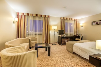 This urban hotel is located approximately a quarter mile from the center of Kielce. Guests can reach the nearest shops in about a quarter mile.