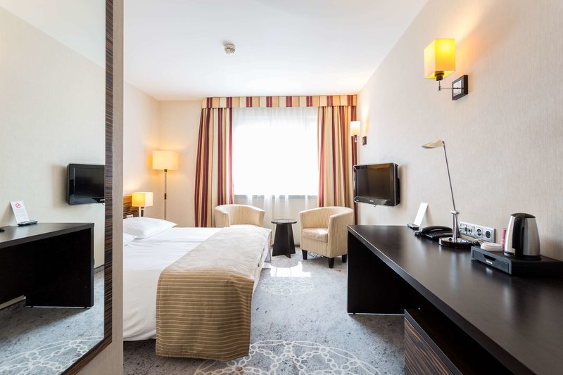 Rooms are equipped with air conditioning. Rooms include a double bed. Extra beds can be requested. Guests will also find a mini fridge included among the standard features. A direct dial telephone, a television with satellite/cable channels and WiFi are provided as well. Bathrooms are equipped with a shower and a bathtub, as well as a hairdryer. Guests can also reserve wheelchair-friendly rooms with wheelchair-accessible bathrooms. The hotel has family rooms and 79 non-smoking rooms.