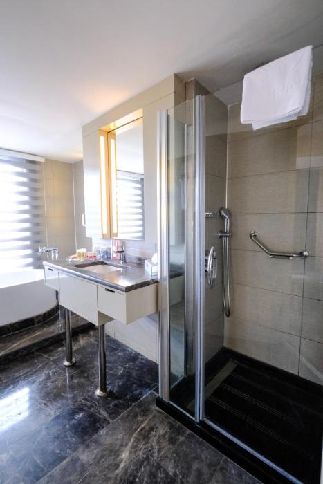 Rooms are equipped with air conditioning and central heating. A safe and, for a fee, a minibar are also available. Additional features include a refrigerator, a mini fridge and a tea/coffee station. Equipped with a telephone, satellite television and WiFi (no extra charge), the rooms provide many ways for guests to stay connected and entertained. Guests will also find slippers in their rooms. A hairdryer and bathrobes are available in the bathrooms, which are equipped with a shower. The hotel has non-smoking rooms and smoking rooms.