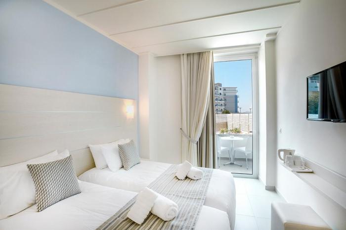 Ideal for beach vacationers, this hotel lies in the heart of Rhodes Town, near the beach. The nearest shops can be reached within about 550 yards. Rhodos (RHO) Airport is approximately 9 miles away.