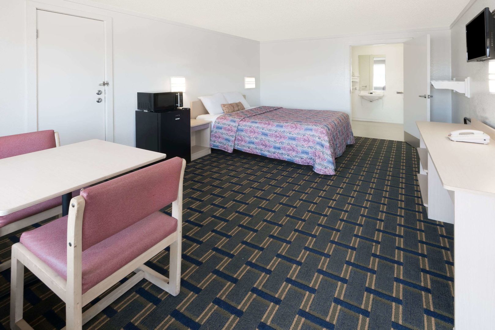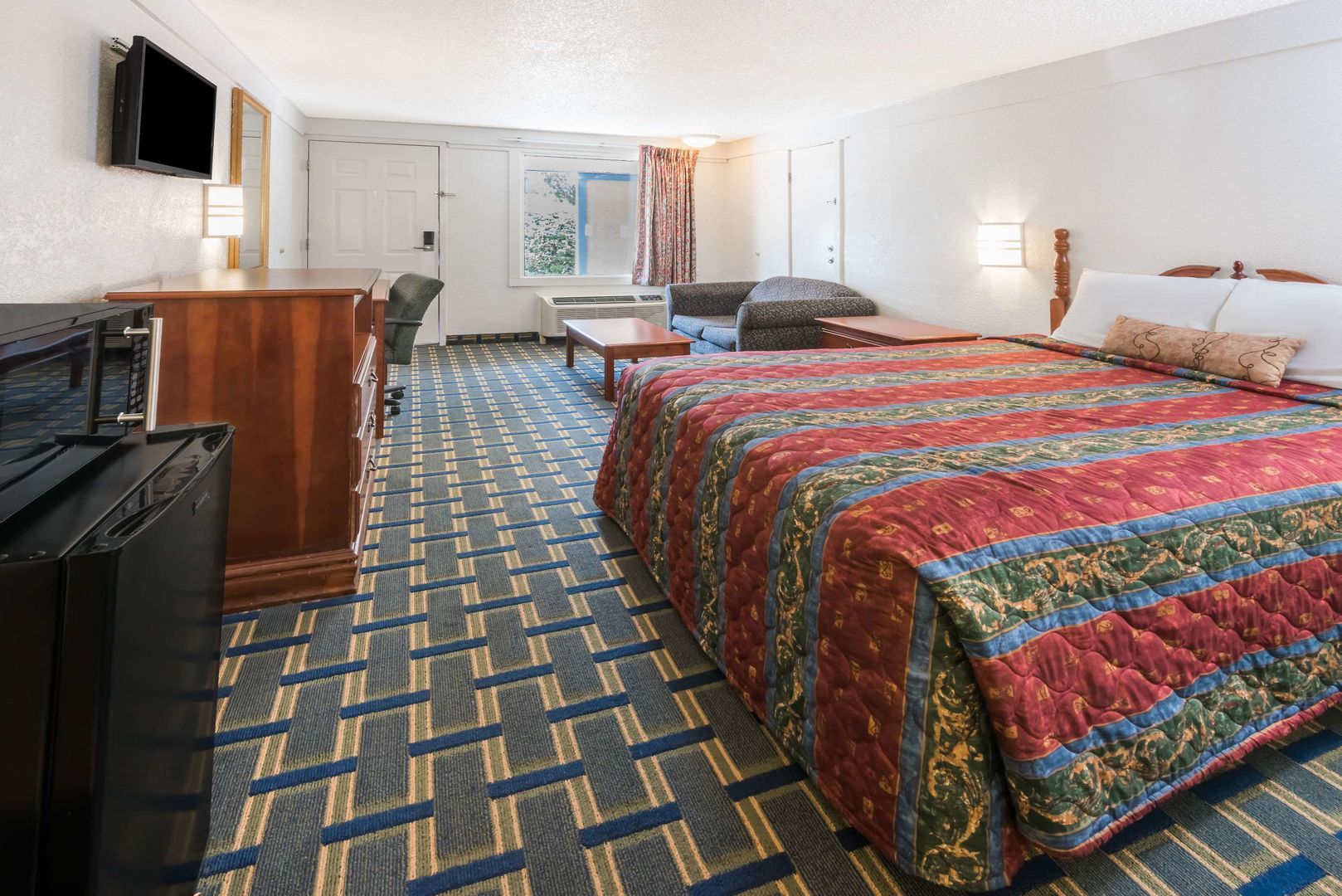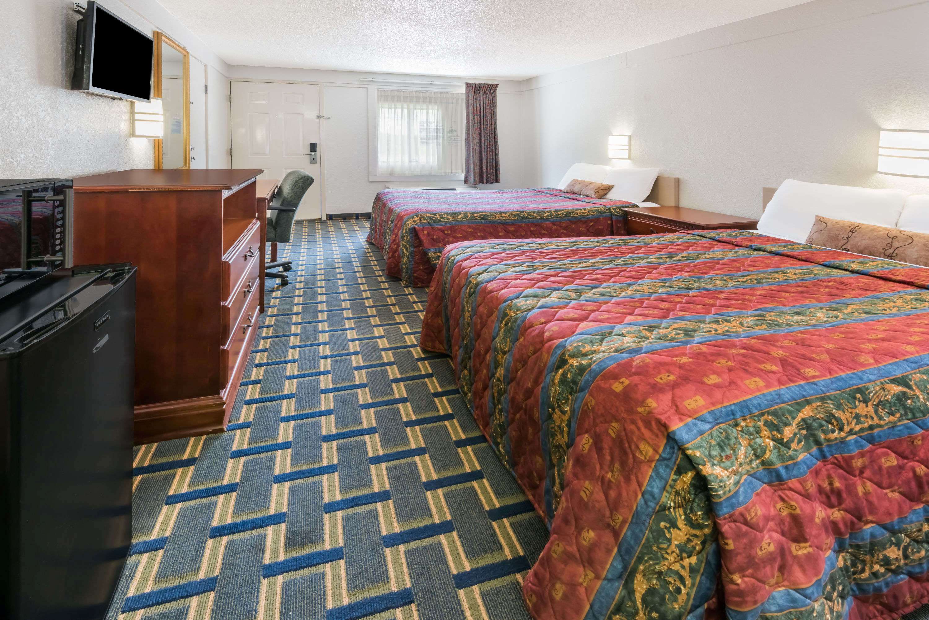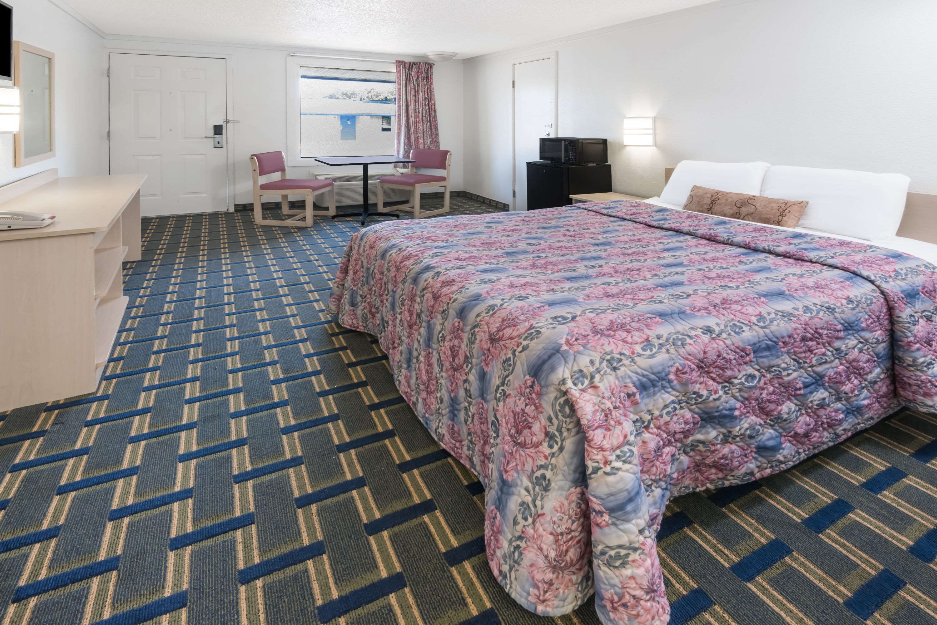 Room would have been OK, but smelled moldy. Room didn't have enough plug-ins to plug in the TV, fridge, & microwave all at the same time let alone charge a phone or computer. Outdoor pool looked...