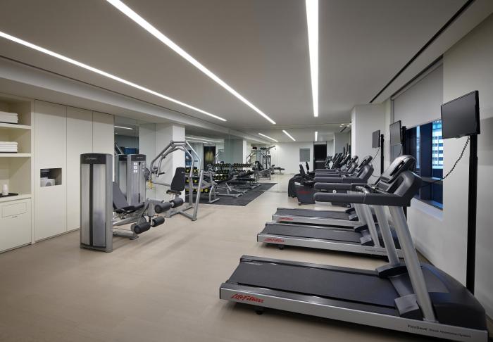 After an eventful day, guests can work out and recharge in the gym.