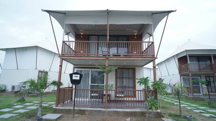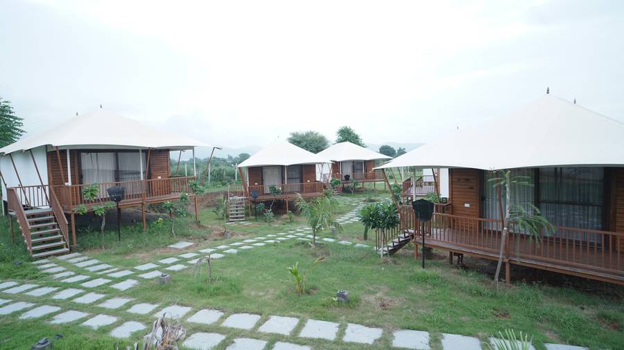Nestled in the serene embrace of the Aravalis, ShriGo Resort Pushkar offers a peaceful retreat for those seeking wellness, luxury, and rejuvenation. Set amidst 10 acres of lush landscapes in Surajkund, this exquisite resort combines the best of modern comforts with the timeless charm of country living. The resort features 15 elegantly designed tents and villas, each boasting plush furnishings, indulgent bath amenities, and select villas offering private plunge pools for a truly luxurious experience.