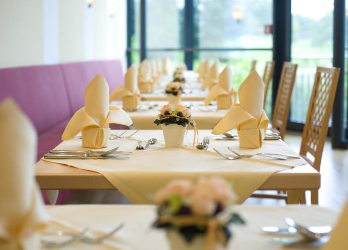 Dining facilities include a restaurant, a dining room and a bar. Half board can be booked. A delicious and varied buffet is prepared for breakfast and dinner. Special meals, including vegetarian dishes, are also available.