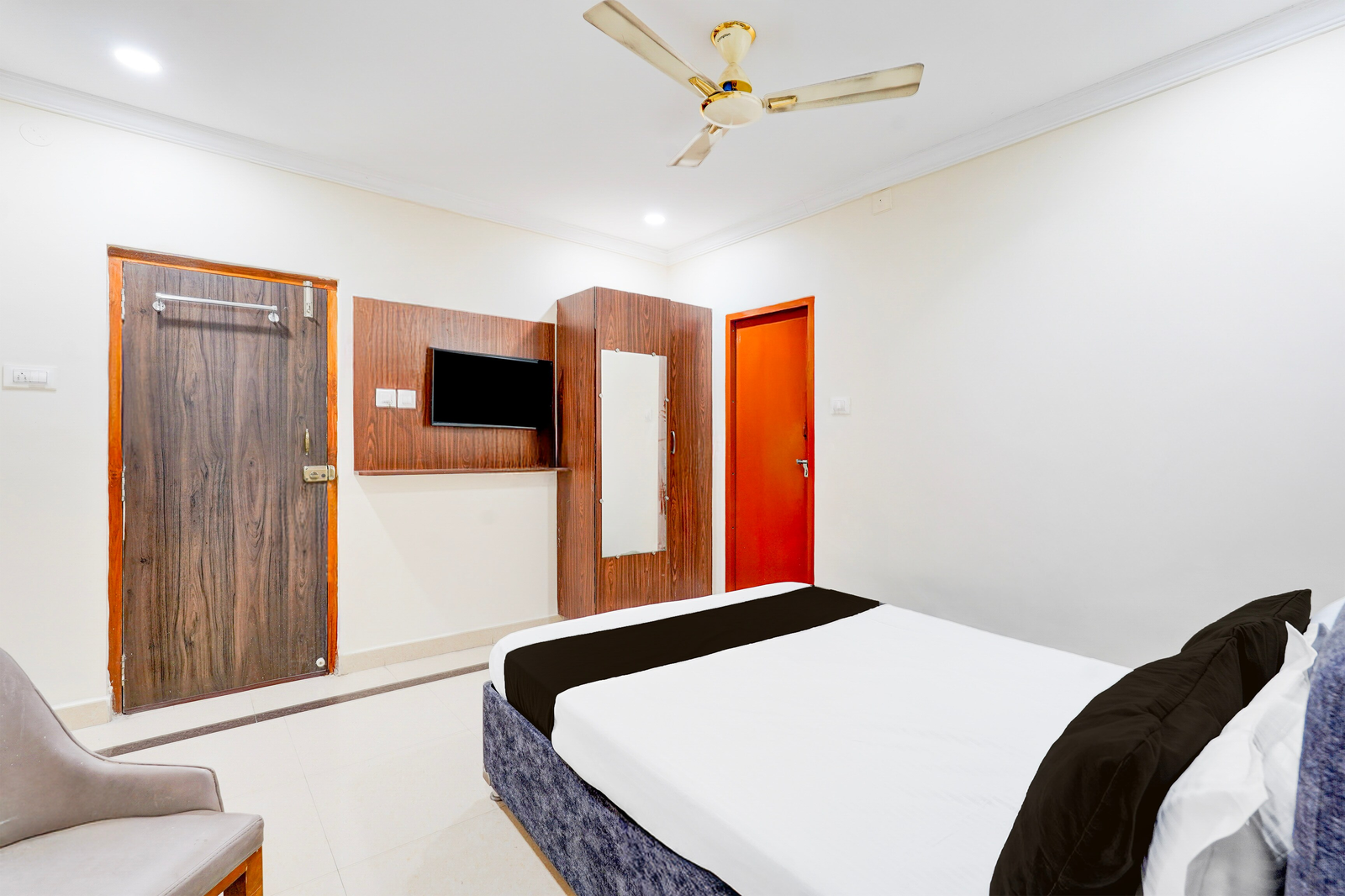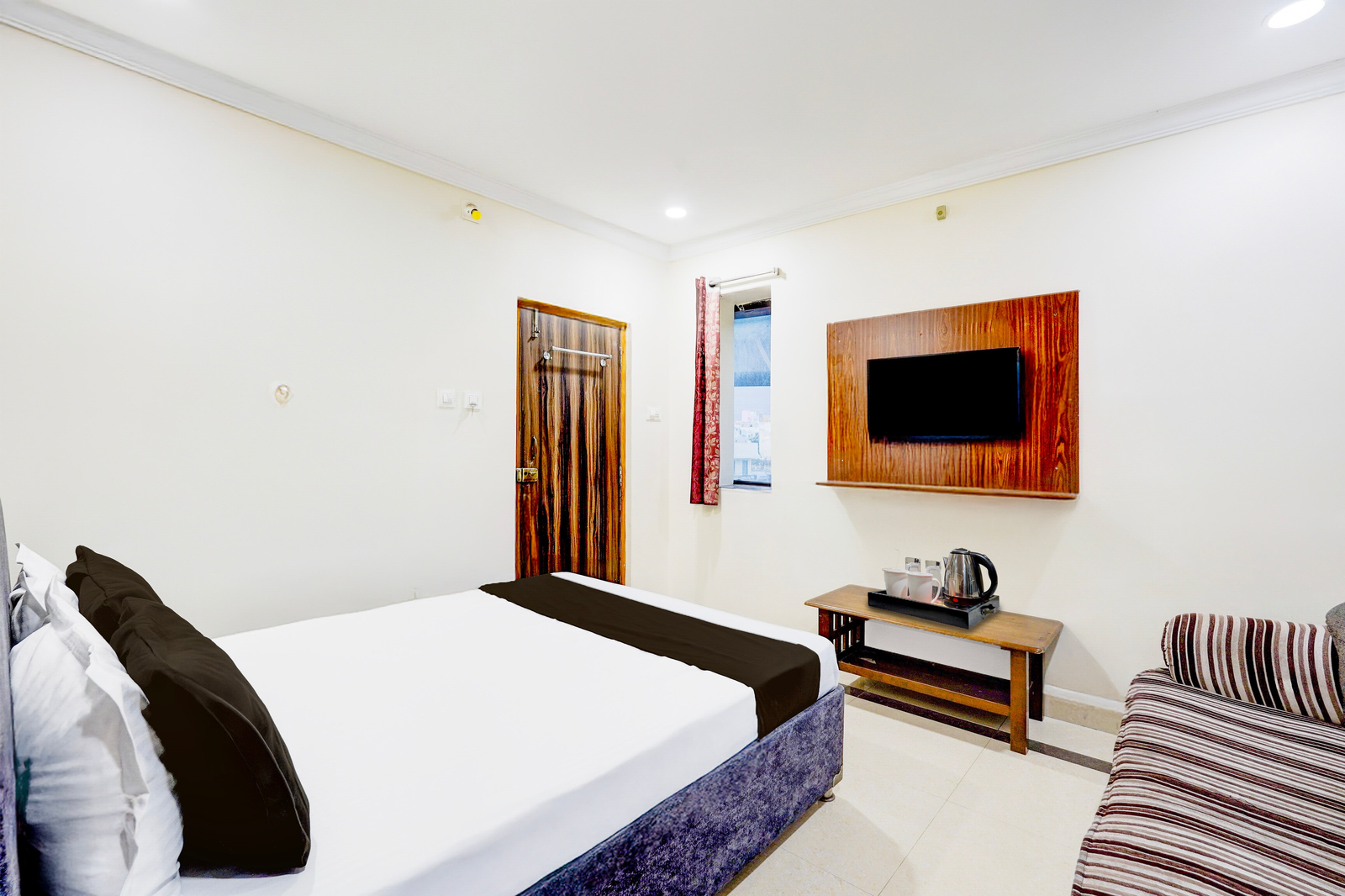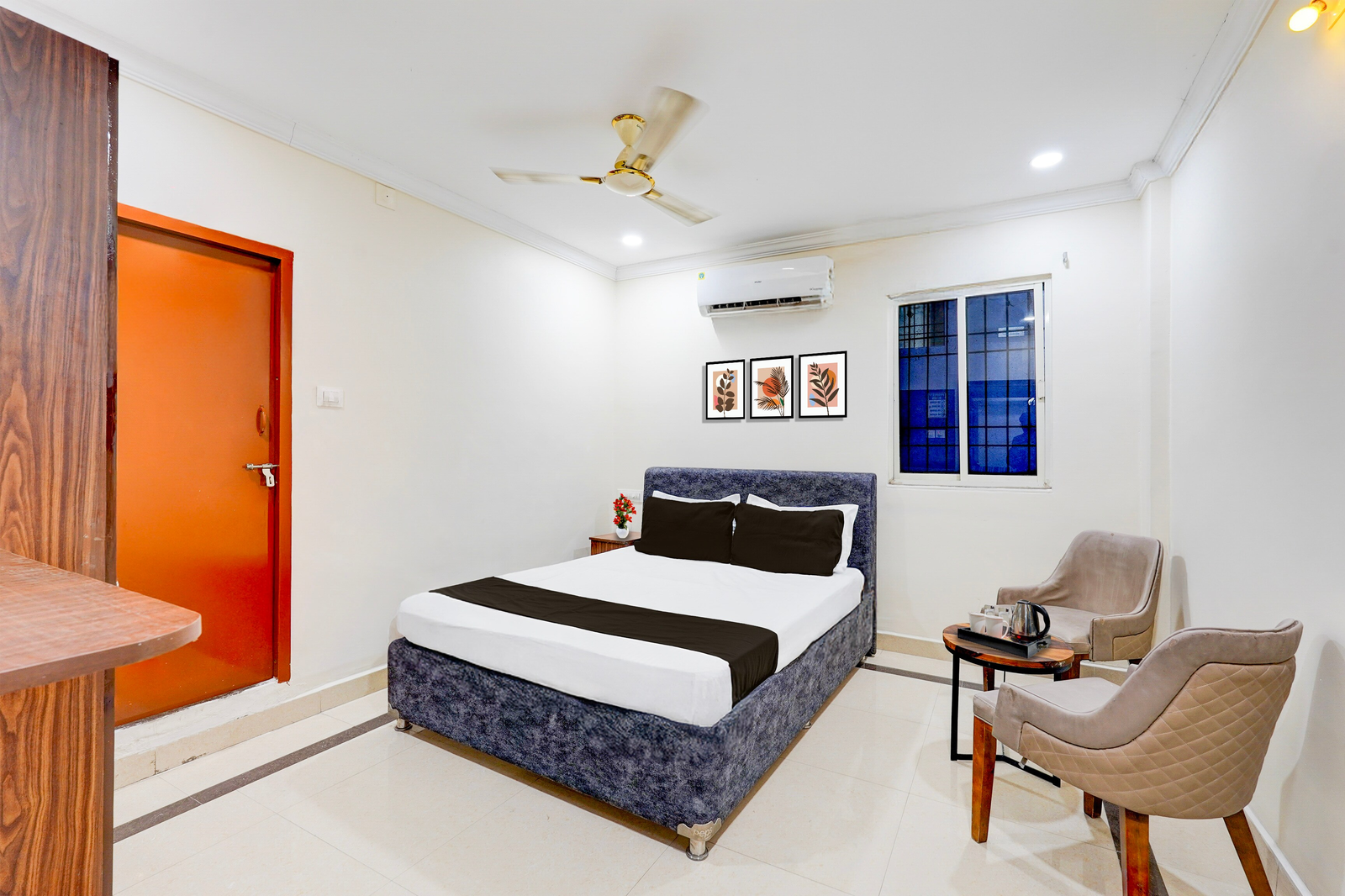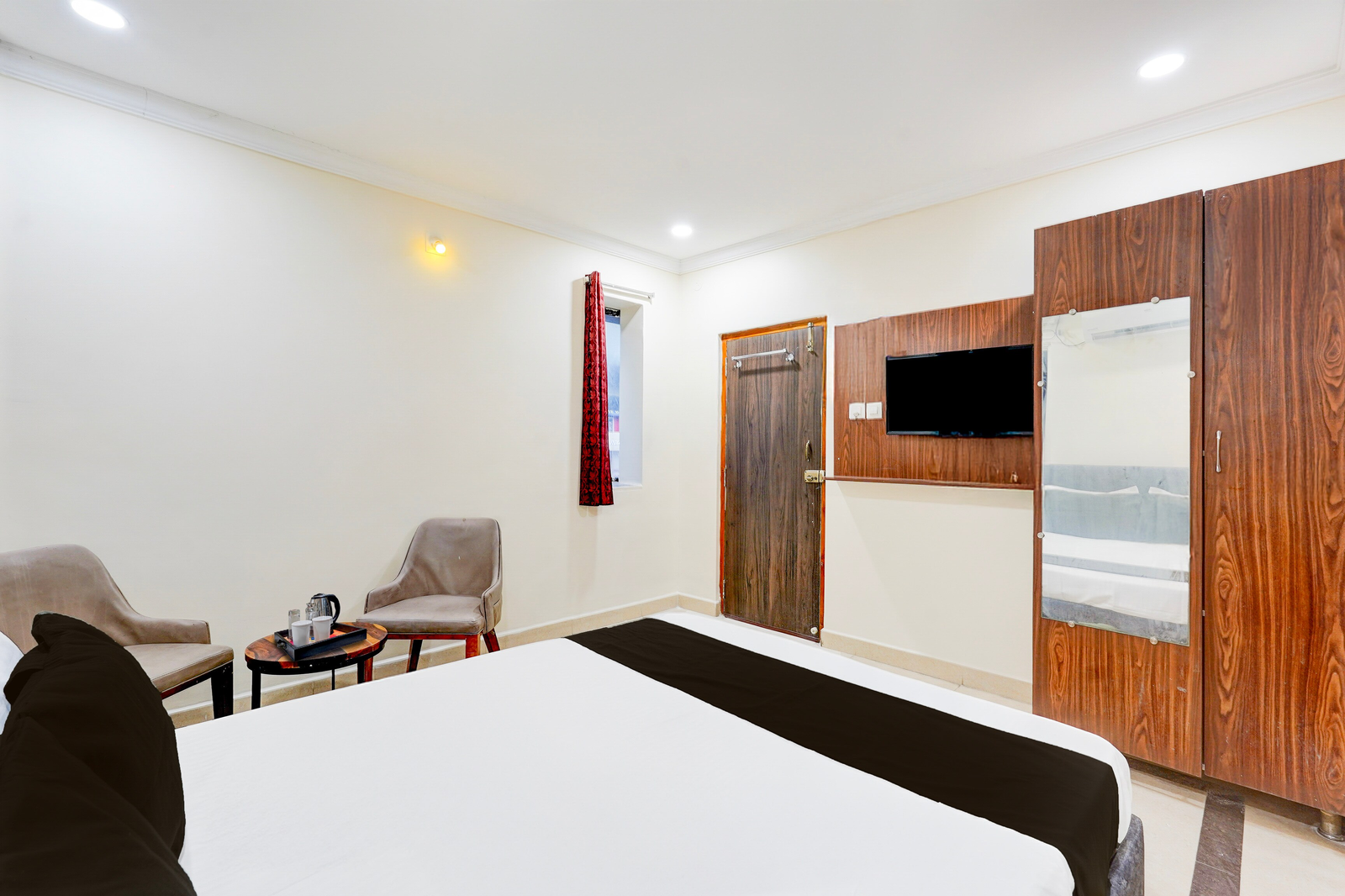 Super Hotel O Airport Road Near Leela Mahal in Tirupati offers family rooms with air-conditioning, private bathrooms, work desks, and seating areas. Each room includes free toiletries, a bath or shower, TV, tiled floors, and a wardrobe.
