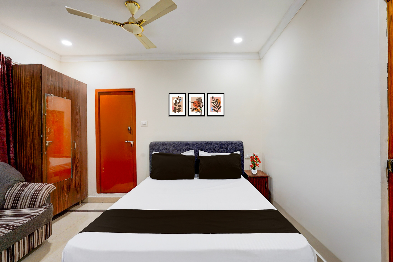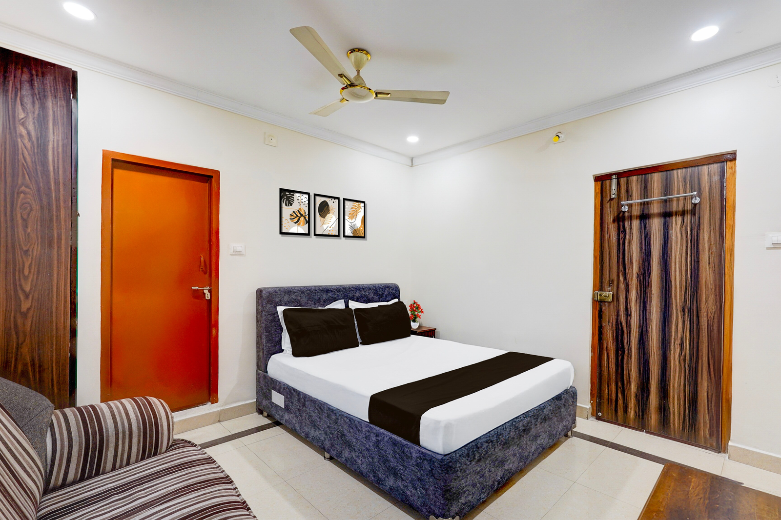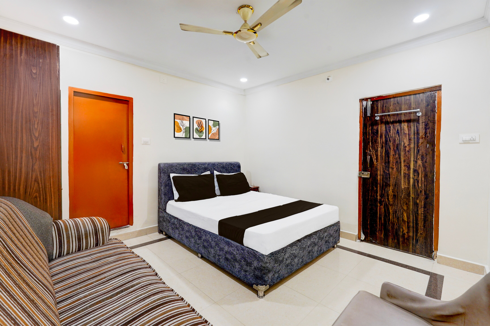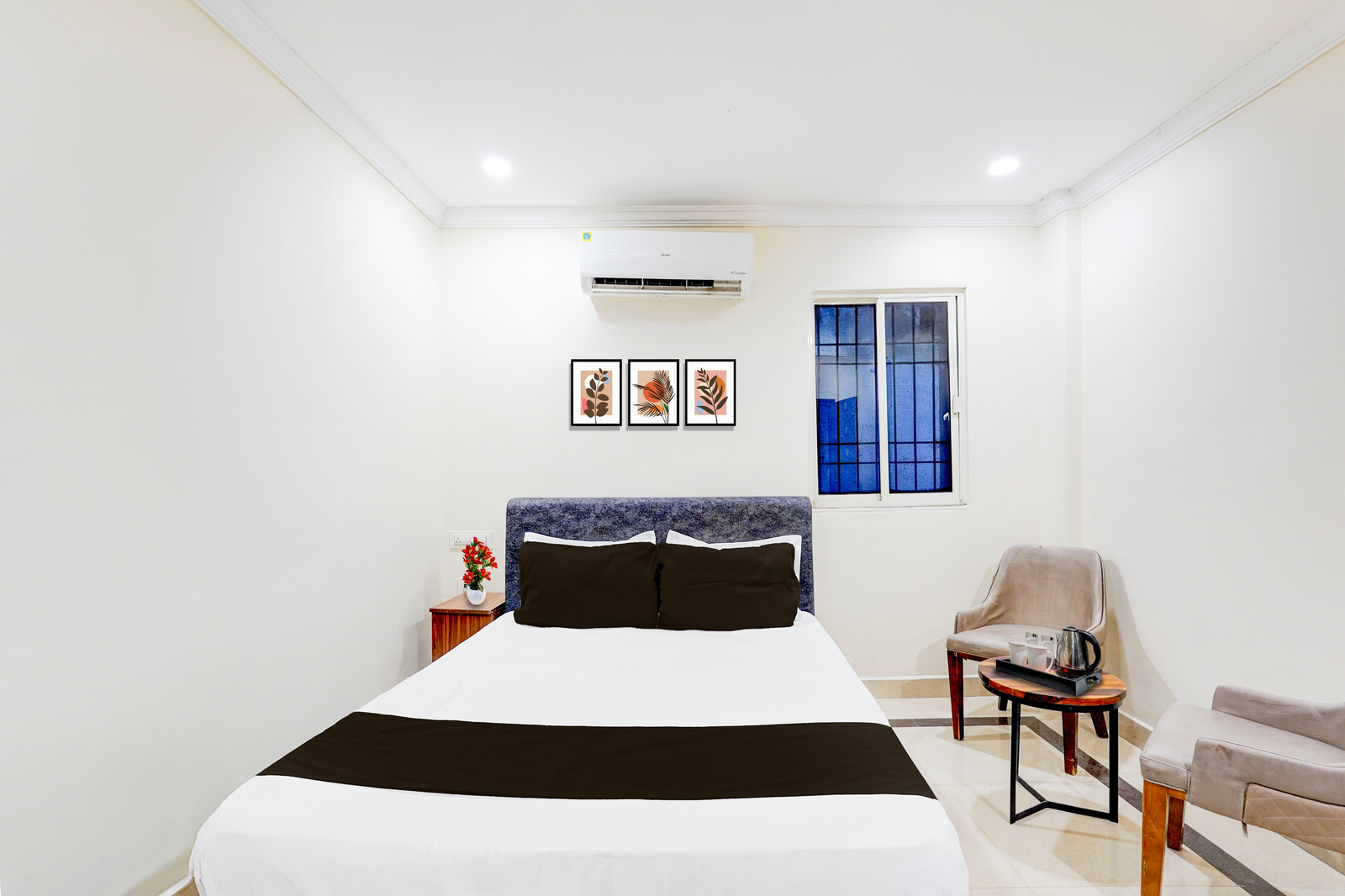 Super Hotel O Airport Road Near Leela Mahal in Tirupati offers family rooms with air-conditioning, private bathrooms, work desks, and seating areas. Each room includes free toiletries, a bath or shower, TV, tiled floors, and a wardrobe.