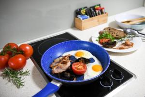 Rooms feature a living room and a kitchen. Air conditioning ensures comfortable temperatures. Some rooms have a balcony, which gives guests additional space for rest and relaxation. Rooms include a sofa bed. Separate bedrooms are available. Children's beds can be requested for younger guests. For self-catering guests, there is a well-equipped kitchenette with a refrigerator, cooktop, microwave and tea/coffee station. A telephone, a flatscreen television and WiFi ensure optimal comfort.