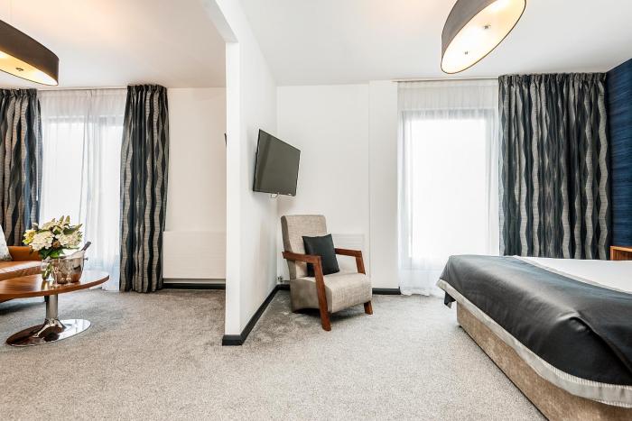 A double bed ensures a good night's sleep. Children's beds can be requested for younger guests. Guests will also find a tea/coffee station included among the standard features. A TV and WiFi are provided as well. A hairdryer is available in the bathrooms. The hotel has family rooms and non-smoking rooms.