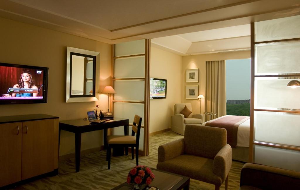 Situated In New Delhi, 8.1 Km From Qutub Minar, The Grand New Delhi Features Accommodation With A Fitness Centre, Free Private Parking, A Garden And A Terrace. Featuring A Restaurant, The Property Also Has A Bar, As Well As A Sauna And A Hot Tub. The Accommodation Provides A Kids' Club, Room Service And Currency Exchange For Guests. The Rooms Are Fitted With Air Conditioning, A Flat-Screen TV With Cable Channels, A Minibar, A Kettle, A Bidet, Free Toiletries And A Desk. Rooms Have A Safety Deposit Box And Free Wifi, While Certain Rooms Are Fitted With A City View. At The Hotel All Rooms Include Bed Linen And Towels. A Buffet, Continental Or American Breakfast Is Available Each Morning At The Property.