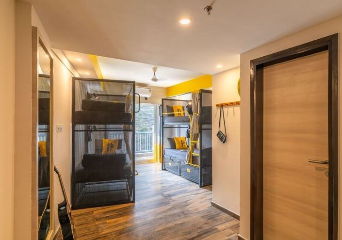 Rishikesh, where the Ganga flows wild and free, and the mountain air fills you with peace. Whether you're here for white-water rafting, yoga, or unwinding at a riverside café, this town has an infectious energy that draws in travellers of all kinds. Situated just a few metres from the iconic Shree Neelkanth Mahadev Temple, The Hosteller Bam Rishikesh, Neelkanth is your home in the hills. Thoughtfully designed rooms offer breathtaking valley views, while accessible facilities ensure a seamless stay for all. From the grand entrance and inviting waiting area to the cosy lounge and lively café, every space is crafted for relaxation and connection. The hostel’s decor reflects Rishikesh’s spiritual essence, blending mandalas, chakras, and the Ganges into a vibrant atmosphere. Hand-painted Sanskrit mantras and intricate motifs set the scene for soulful moments, while fun spaces like the projector area bring travellers together for movie nights and community bonding.