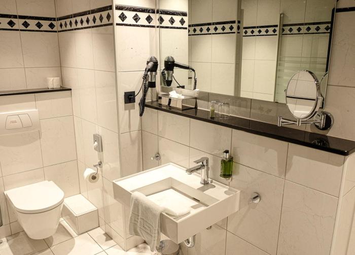 Rooms include a double bed. Children's beds can be requested for younger guests. A safe, a minibar and a desk are also available. Guests will also find a mini fridge included among the standard features. A telephone, a TV and WiFi are provided as well. Bathrooms are equipped with a shower and a bathtub, as well as a hairdryer. The hotel has family rooms, 30 non-smoking rooms and 1 smoking room.