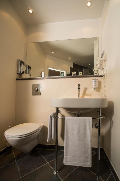 Room was large and had some nice features and details, especially the modern bathroom. However it was also very dark - more lighting needed. Carpet was absolutely hideous and meant it was difficult...