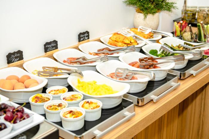 A generous breakfast buffet guarantees a great start to the day.