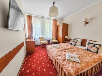 The rooms maybe aren't as modern as they could be (the bathrooms are, however) but otherwise the decor was lovely, the breakfast is awesome (a Polish-style buffet) and the receptionist is absolutely...
