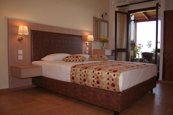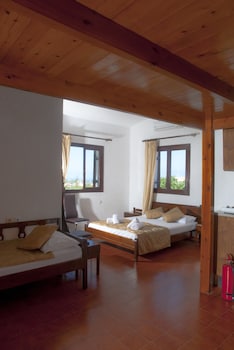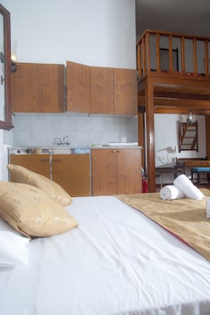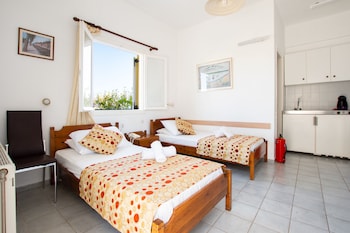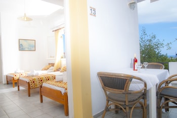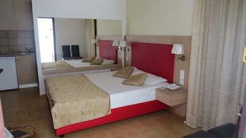 My husband and I stayed for 7 nights, wanted a total relax, which we got! Set in gardens, nice pool and the most spotlessly clean apartment ever stayed in Greece, cleaned daily. Good aircon included...