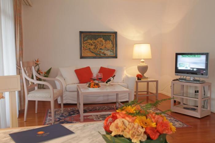 Guests have a choice of 120 non-smoking rooms, including 28 suites and 71 apartments, located in two 5-story buildings with elevators. The reception desk in the lobby is staffed around the clock. A coat check, a safe and a currency exchange service are available. Wireless internet access allows guests to stay connected while on vacation. Wheelchair-accessible facilities are available. A garden provides extra space for rest and relaxation in the open air. Additional amenities include a TV room and a playroom. Guests arriving by car can park their vehicles in the garage or in the parking lot. Other services include a babysitting service (on request and for a fee), medical assistance, room service, a laundry service and a hairdresser.