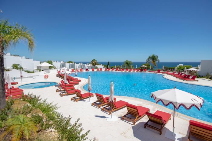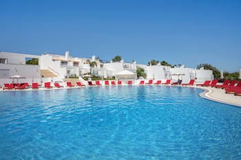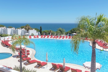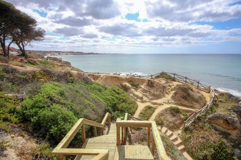 This hotel lies in a quiet area in Albufeira, about a quarter mile from the sandy beach.
