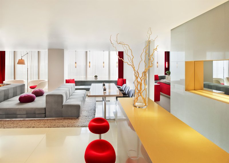 Air conditioning and individually adjustable heating ensure that rooms maintain comfortable temperatures. Rooms have a double bed or a king-size bed. A safe and a minibar are also available. Additional features include a mini fridge and a tea/coffee station. An ironing set is provided for guests' convenience. Internet access, a telephone, a television with satellite/cable channels, a radio and a stereo system are provided as well. Bathrooms are equipped with a shower and a bathtub, as well as a hairdryer. Guests can also reserve wheelchair-friendly rooms with wheelchair-accessible bathrooms. The hotel has family rooms and non-smoking rooms.