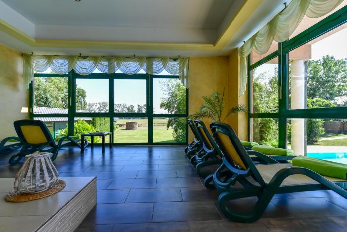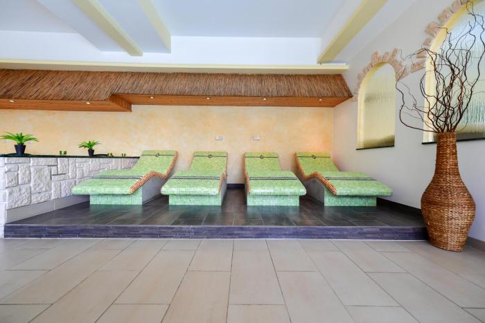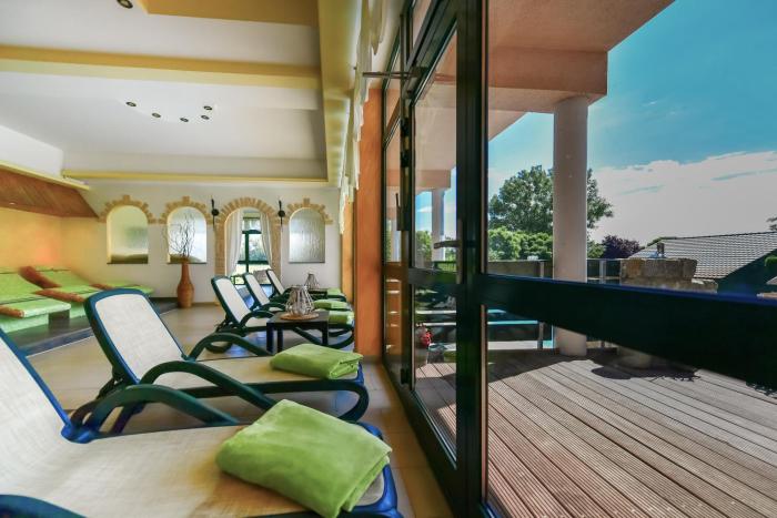 Ein Hotel zum totalen Ausspannen, der große Außenpool läd zum Baden ein, eine große Wiese mit Liegen zum Sonnen, ein wirklich sehr schöner Wellnessbereich mit warmen Innenpool, Saunen...